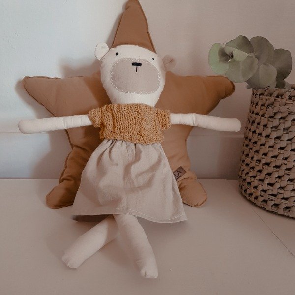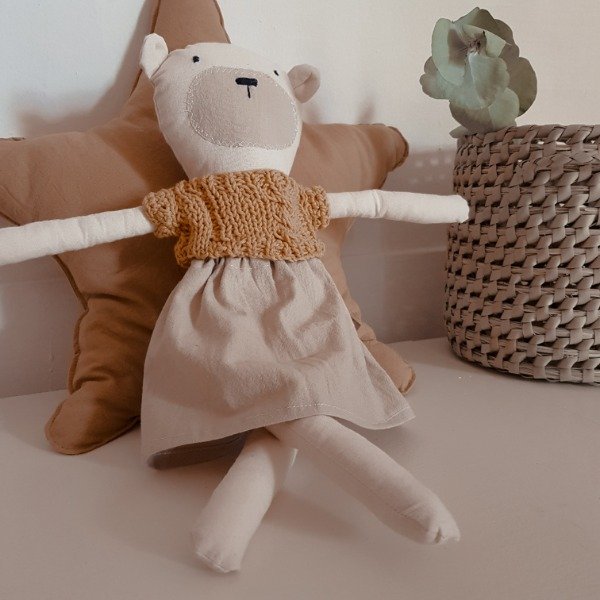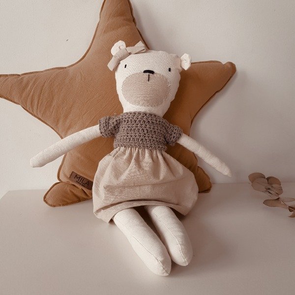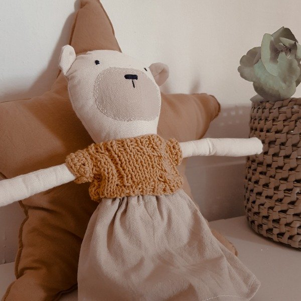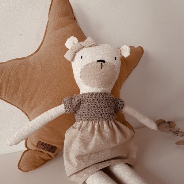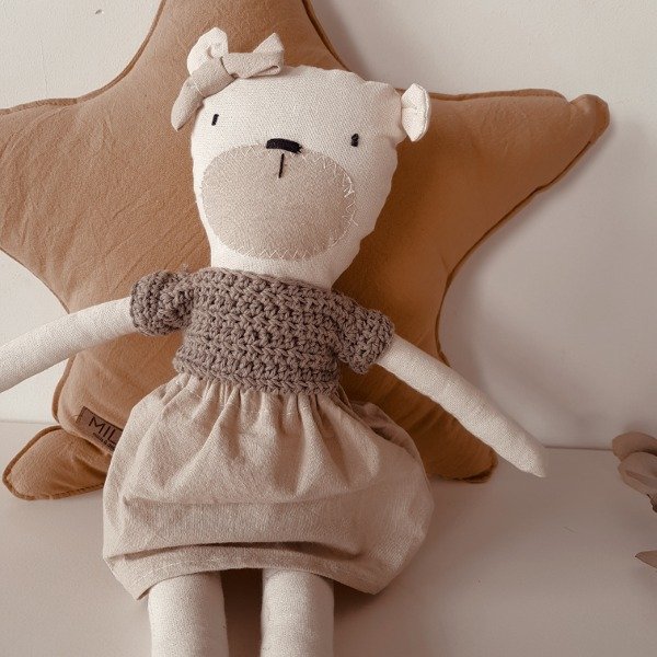 𝗠𝗮𝘁𝗲𝗿𝗶𝗮𝗹: Lienzo de algodón 100% con relleno de vellón siliconado, complementado con detalles tejidos en hilo de algodón o lana.