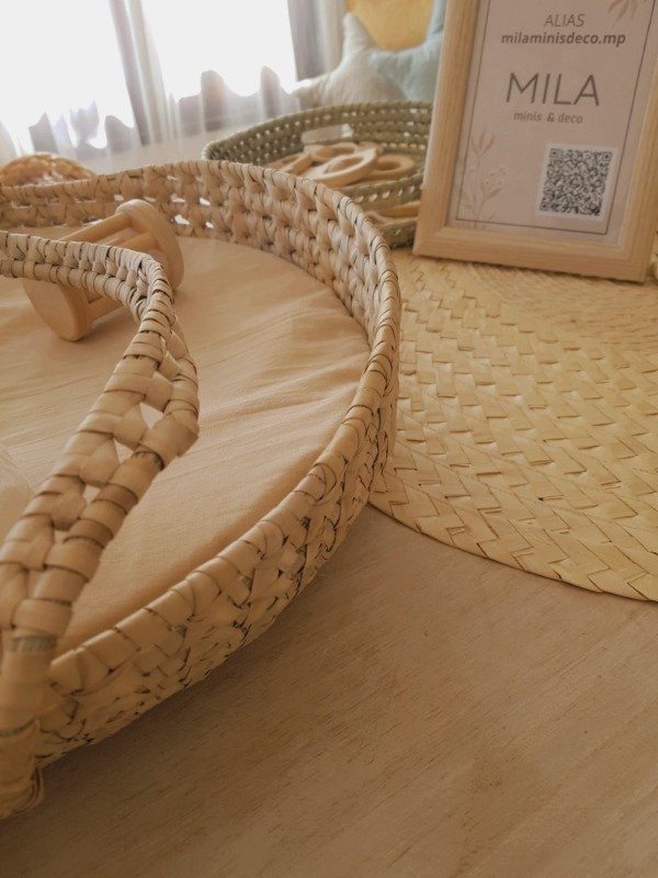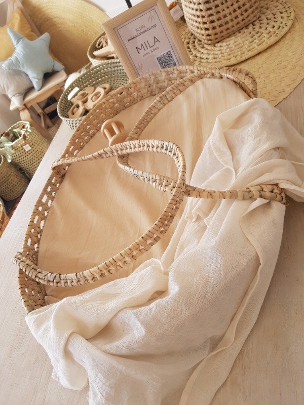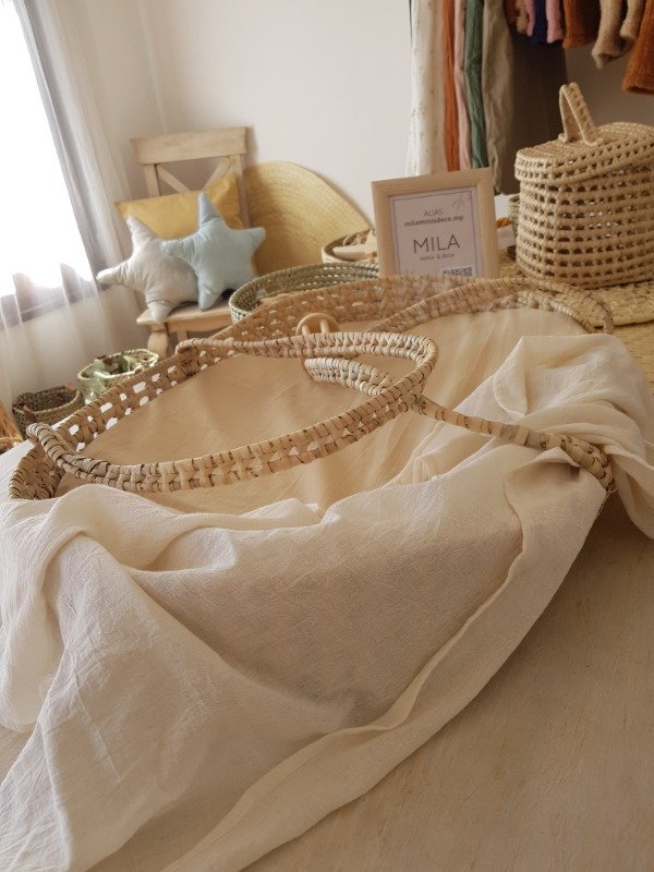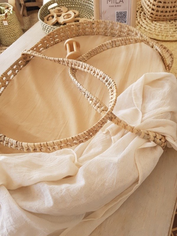 Realizado en fibras naturales, viene con sistema de asas para facilitar su transporte.